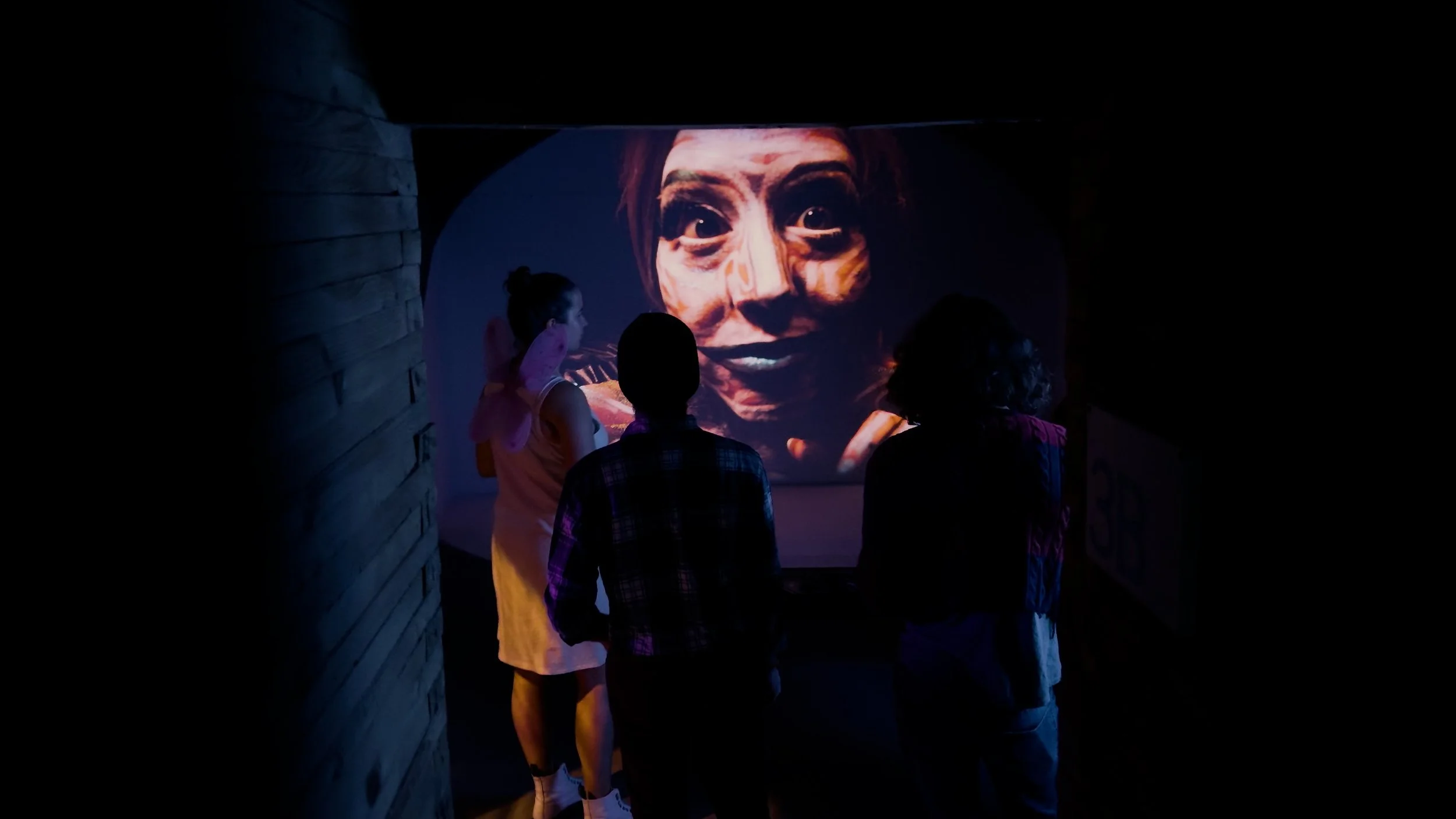 The Atmosphere - This is a vital component and the most site-specific. The goal is to immerse participants in a fabulation - creating space for curiosity and intimacy. Practical elements to achieve this have included: lighting, audio, atmospheric projection - and in collaboration with Joseph Corcoran, projection on glass and neon installation.