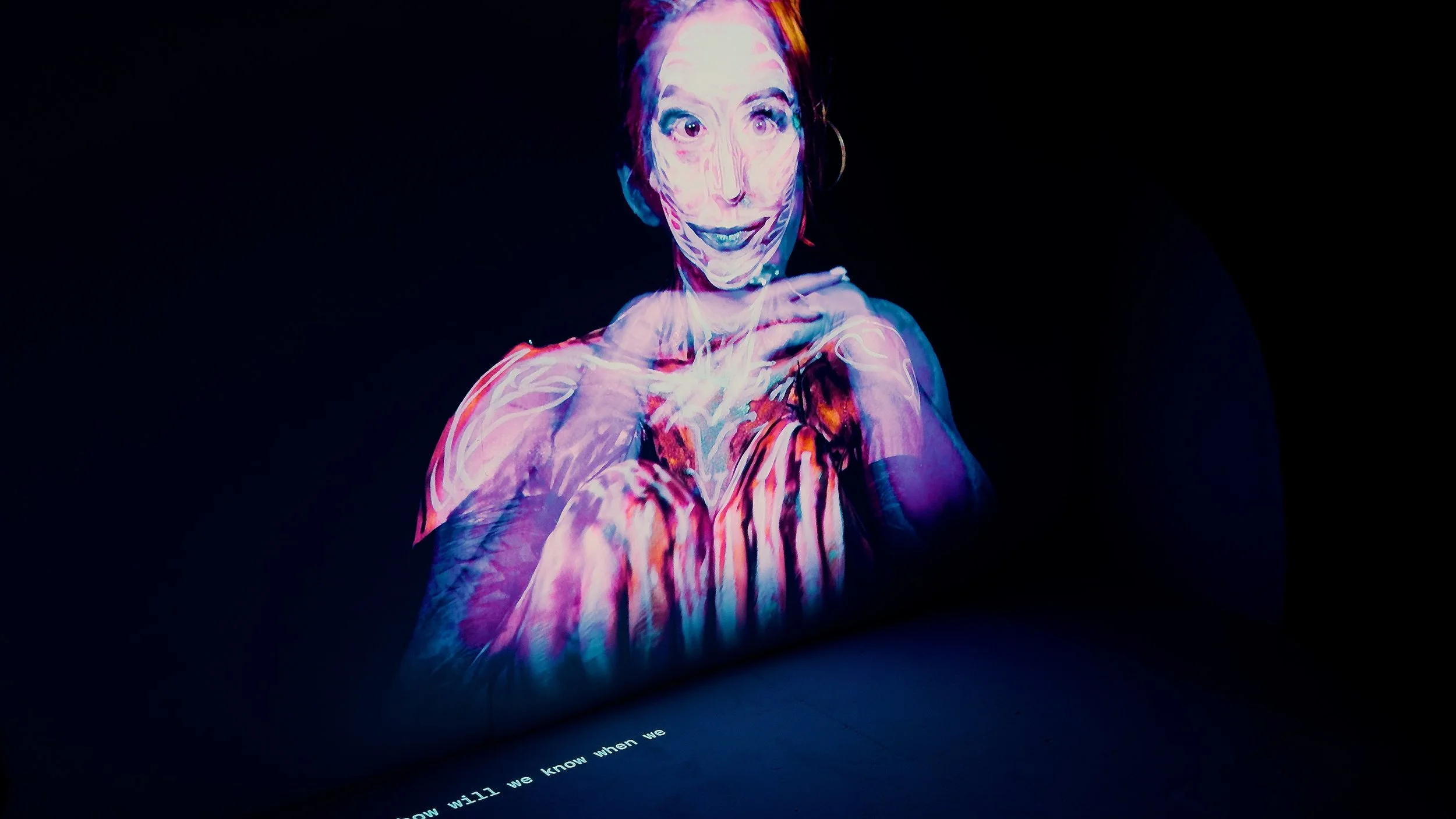 In performance after performance, participants have a hard time realizing that there is a human pulling the strings, even as Mathilda has used progressively obvious clues. In NOMAD 2024 Mathilda sat visibly behind her projection and talked directly into a mic rather than using a voice clone and still participants walked out of the experience convinced it was an “AI”. The content of recent performances has focused on that aspect, pulling apart what participants believe about the technology they use - finding a tangle of myths, fears and intimacy.